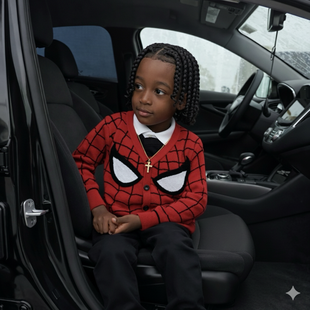 The Amazing Kid., Behind this Amazing Spidey Sweater. He loves the color Blue, loves shapes, and favorite character is Spider Man.